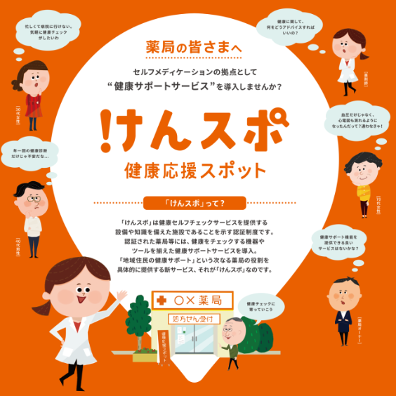SHCAの取り組みとして、薬局やドラッグストア等の店頭を活用し、地域住民に健康サポートサービスを提供できる「健康応援スポット」(以下、「けんスポ」)認証制度を2019年より推進してまいりました。