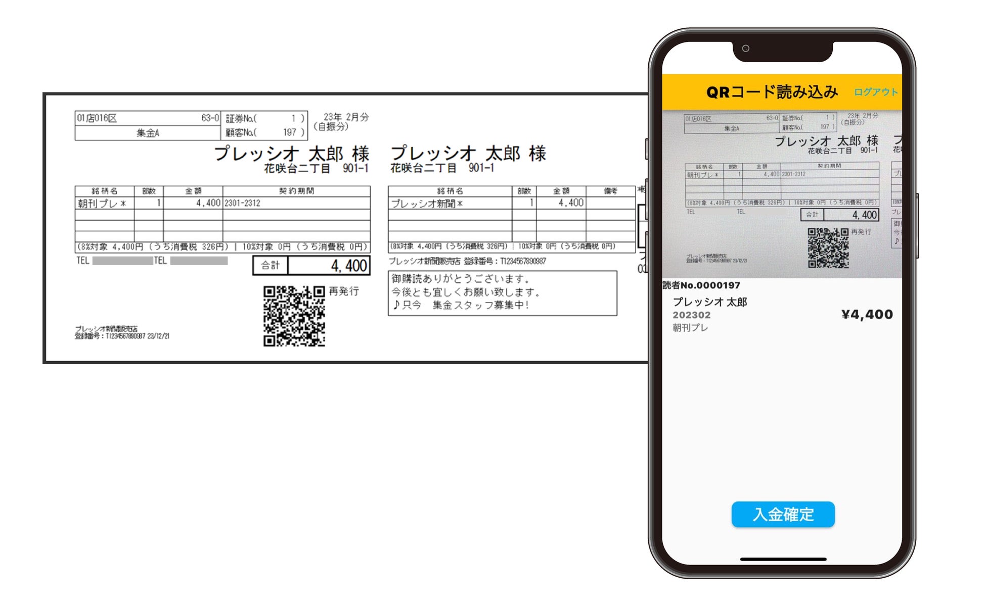 集金時の領収書のQRコードを専用の「集金アプリ」で読み込むだけで、瞬時にデータを取得でき、いままで手間のかかっていた領収書の突合せ作業が大幅に軽減化されるようになりました。