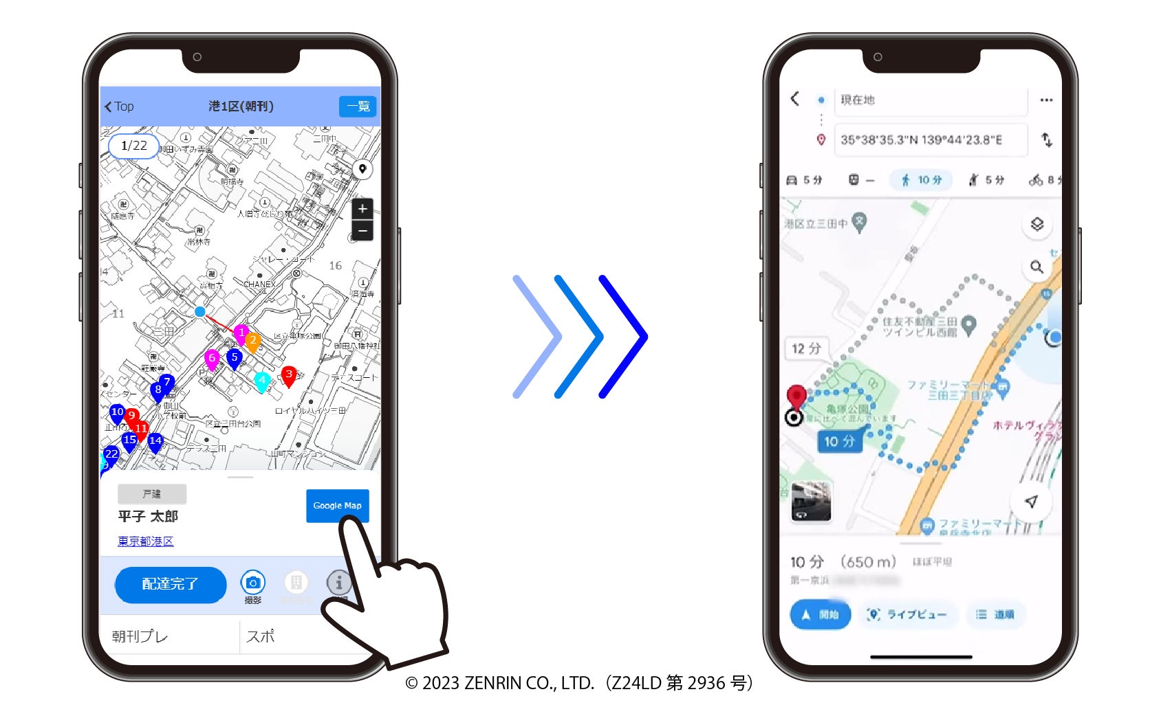またゼンリン地図情報と連動して、Googleマップ上で目的地までの経路を瞬時に確認できるようになりました。