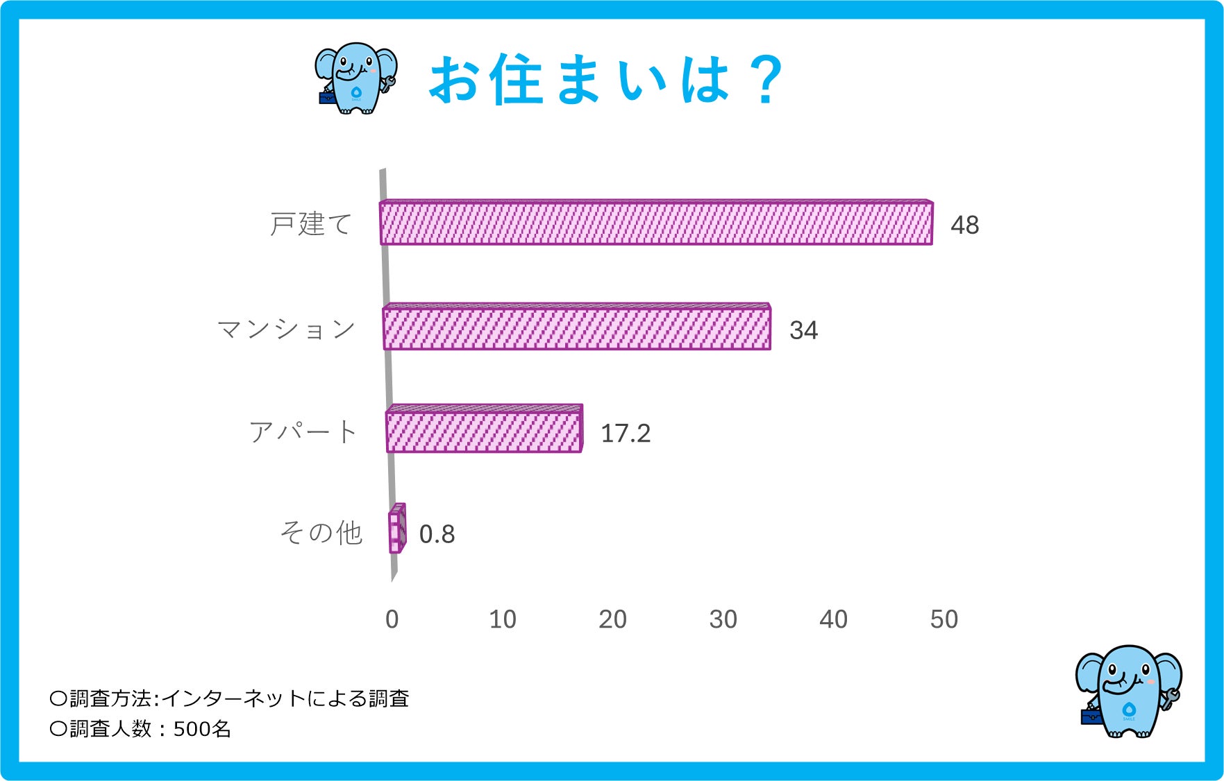 次に「お住まいは?」と言う質問の集計結果を見てみると、トイレ詰まりは戸建て住宅、集合住宅に関係なく発生してる事が分かりました。