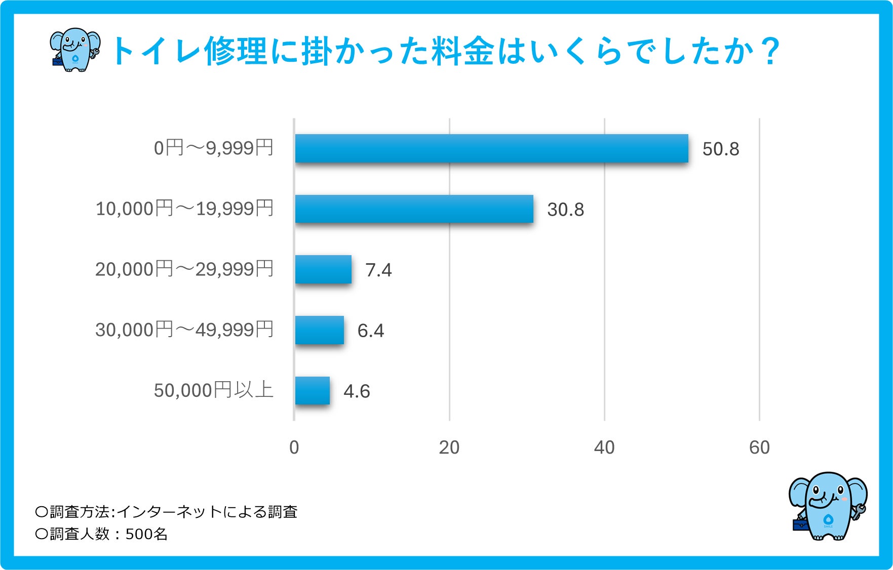 次に皆さんが一番気になる「トイレ修理に掛かった料金はいくらでしたか?」と質問してみると以下の結果が出ました。