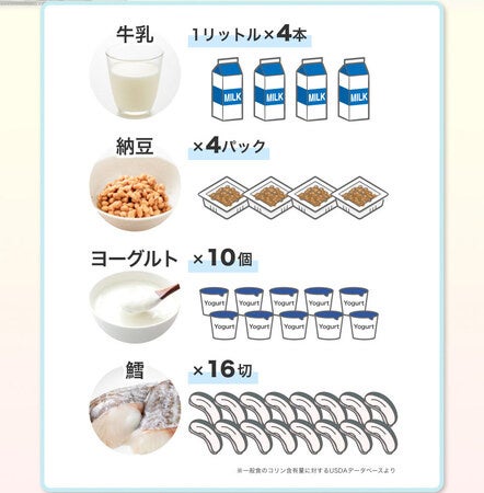 1998年にアメリカで「新しい必須栄養素」と指定された「コリン」をつくる性質があります。