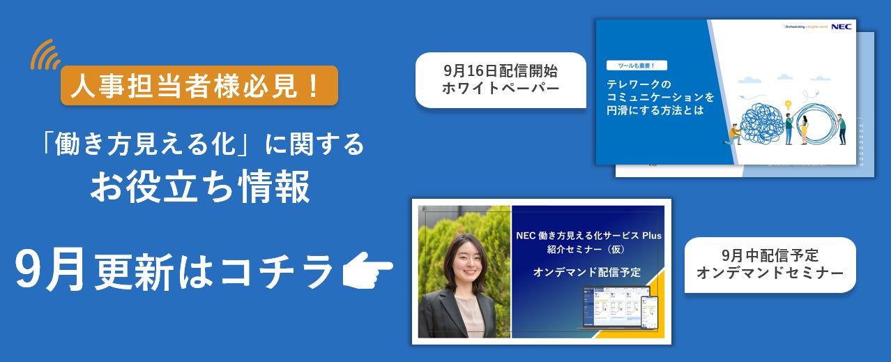 NECソリューションイノベータ、ホワイトペーパー「ツールも重要!テレワークのコミュニケーションを円滑にする方法とは」を9月16日配信予定!新たなオンデマンドセミナーも9月中公開予定!