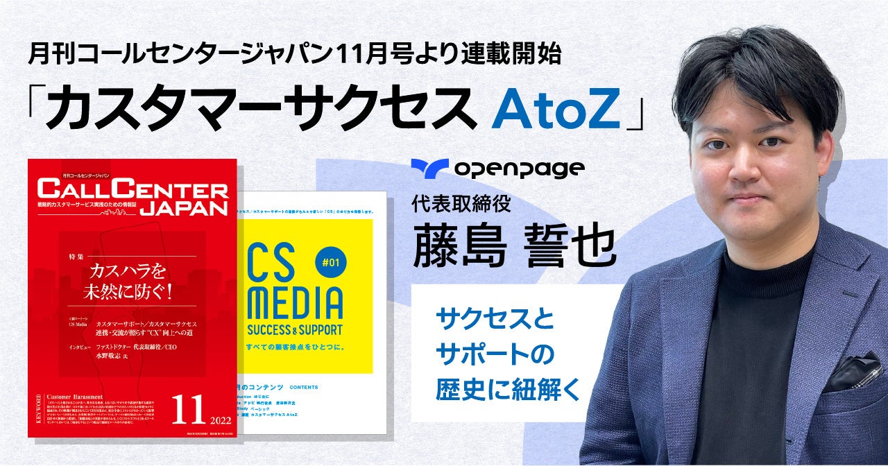 カスタマーサポート・カスタマーサクセス従事者向け専門情報誌『月刊コールセンタージャパン』にてopenpage代表藤島の連載スタート