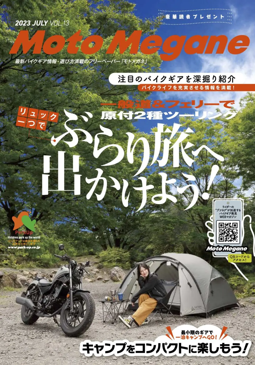 フリーマガジン「Moto Megane」は『ライダーのブツヨクが加速する』をテーマに、ライダーが気になるバイクニュースや情報(ギア、パーツ、車両、キャンプ)を発信するウェブマガジンから生まれたフリーマガジンです。