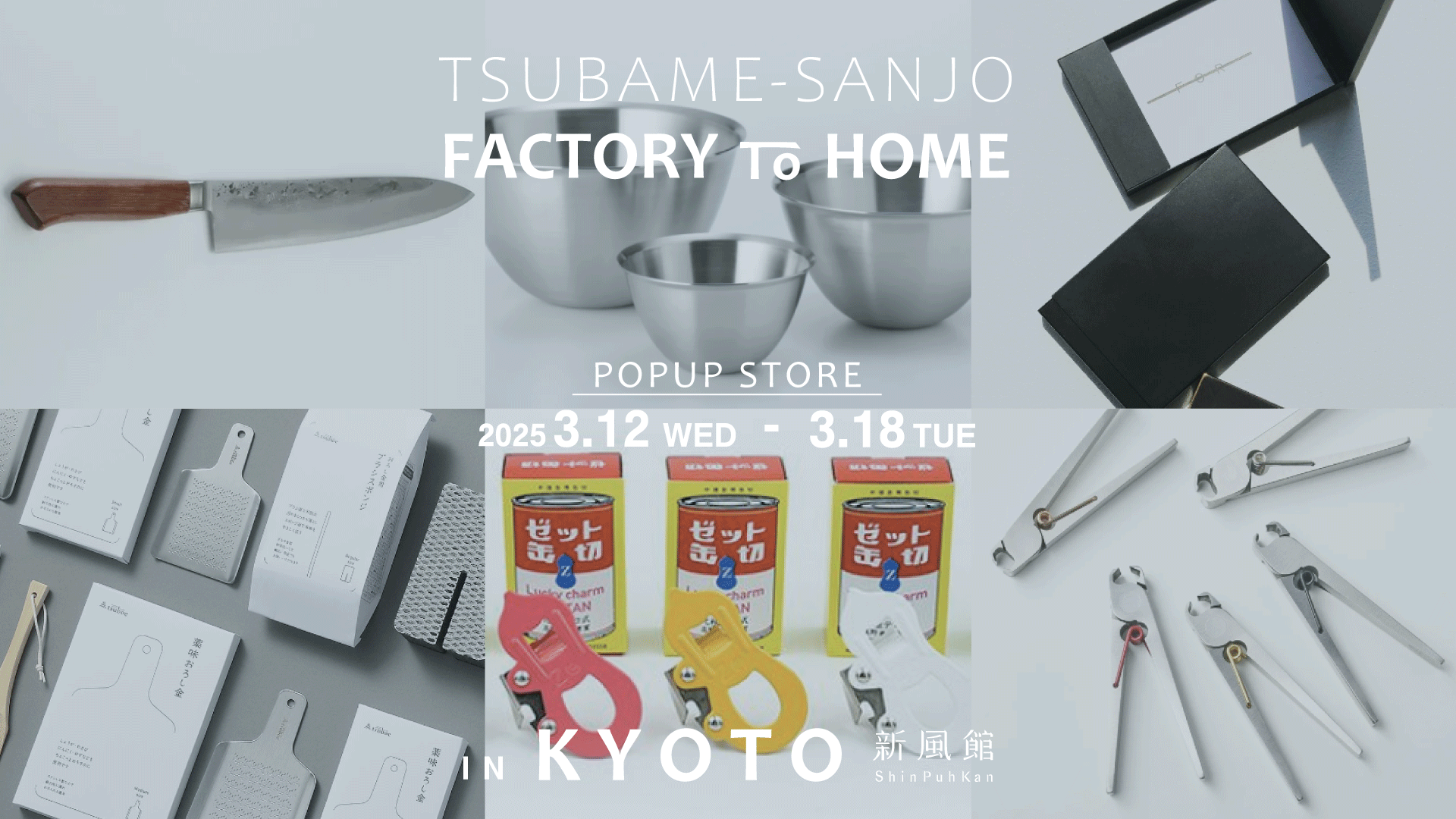 3月12日(水)~18日(火)京都 新風館にて、新潟県燕三条地域のものづくり企業が集うPOPUPイベント『TSUBAME-SANJO / FACTORY to HOME in KYOTO 』を開催します。
