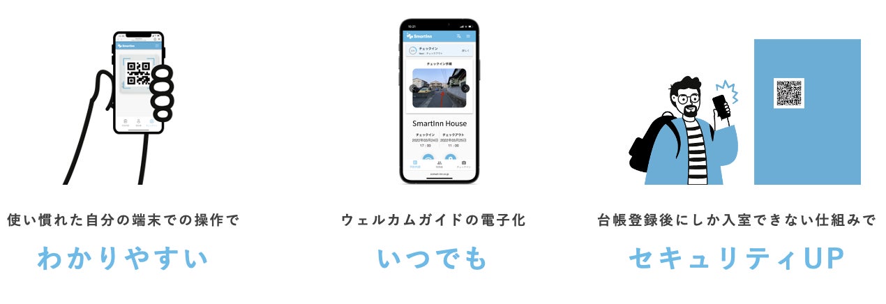 おもてなしをDXする、株式会社SmartInnは(本社:福岡市博多区、代表取締役:松木駿)2022年4月15日より、宿泊施設のペーパーレス運営とデータドリブン経営をサポートするシステム「SmartInn(読み:スマートイン)」の正式版を提供開始したことをお知らせいたします。SmartInnは、顧客データに基づいた効率的な宿泊施設運営を可能にするチェックインシステムで、導入に専用の端末は必要ありません。株式会社SmartInnは宿泊施設運営のDXを通じて、最低限の労力で最大限の顧客満足度を得られる宿泊施設を増やし、コロナ禍を通じて生まれた旅行者の新たなニーズに応えることで、地方創生に貢献します。