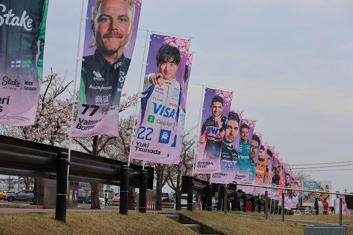 F1日本GP開催期間中に、鈴鹿サーキット内を彩るF1ドライバーの装飾(のぼり)一式。2024年にチャリティーの一環としてドライバー1名(16,500円)で500枚販売した際には完売した品。2025年には販売予定はなく、全ドライバーコンプリートセットとしてお届けいたします。