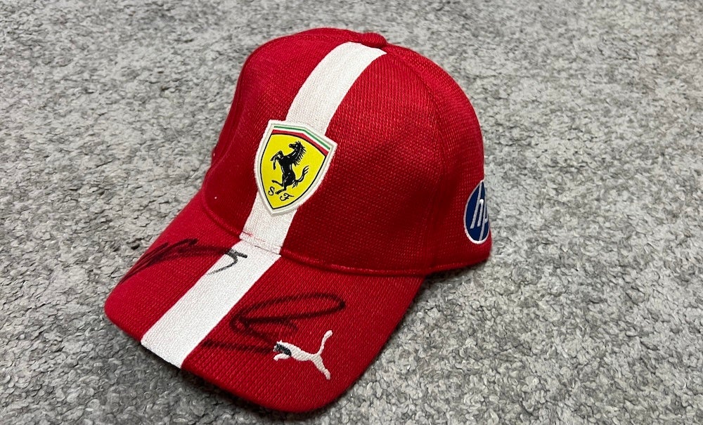2007年のキミ・ライコネン選手のサイン入りフェラーリグローブ、シャルル・ルクレール選手やルイス・ハミルトン選手のサイン入りフェラーリキャップなど、希少なアイテムが揃っています。