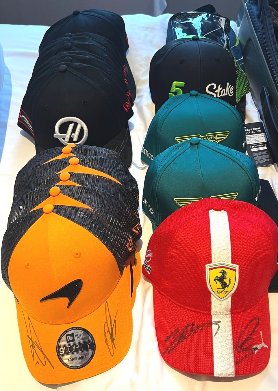 ⚫︎マクラーレンのランド・ノリスとオスカー・ピアストリ、フェラーリのシャルル・ルクレールとルイス・ハミルトン(7回世界チャンピオン)のサイン入り記念品
