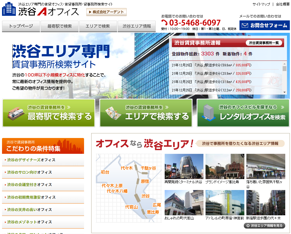 渋谷、新宿に特化した賃貸オフィス物件検索サイトをオープン