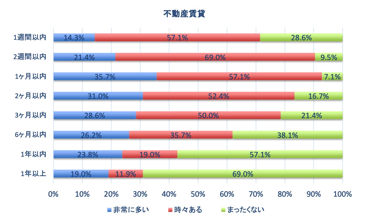 ホームステージング実施後、成約までの期間は仲介賃貸共に、1ヶ月以内の回答が非常に多い。 特に賃貸はホームステージング後、成約まで非常に速いことがわかります。