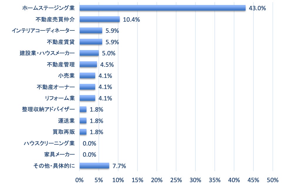 調査回答した方でひときわ目立った業種がホームステージング業で、多くの方に回答して頂きました。