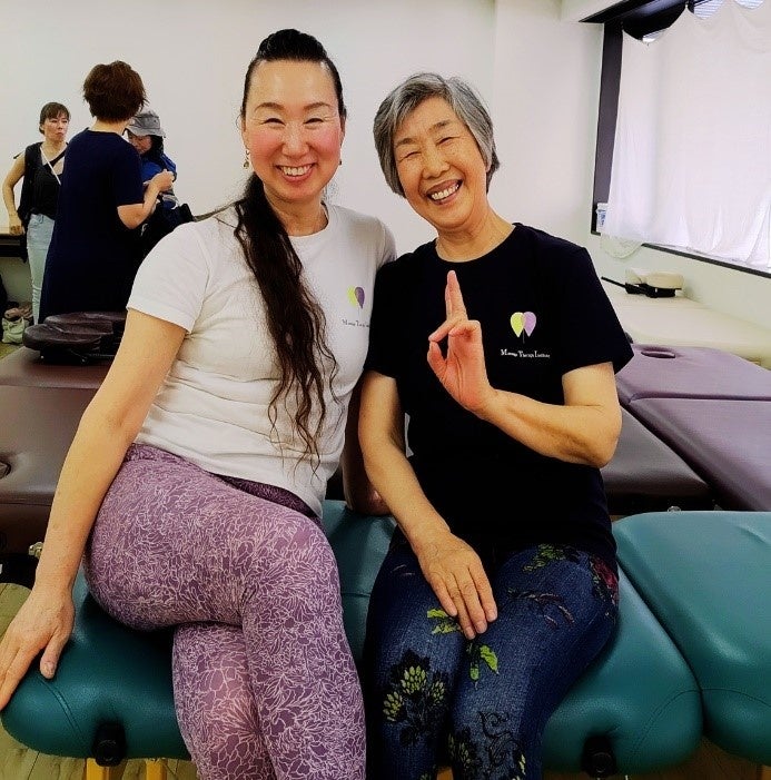 【施術実技の講義を受ける菅原さんとMTI学長の國分理江子さん】
