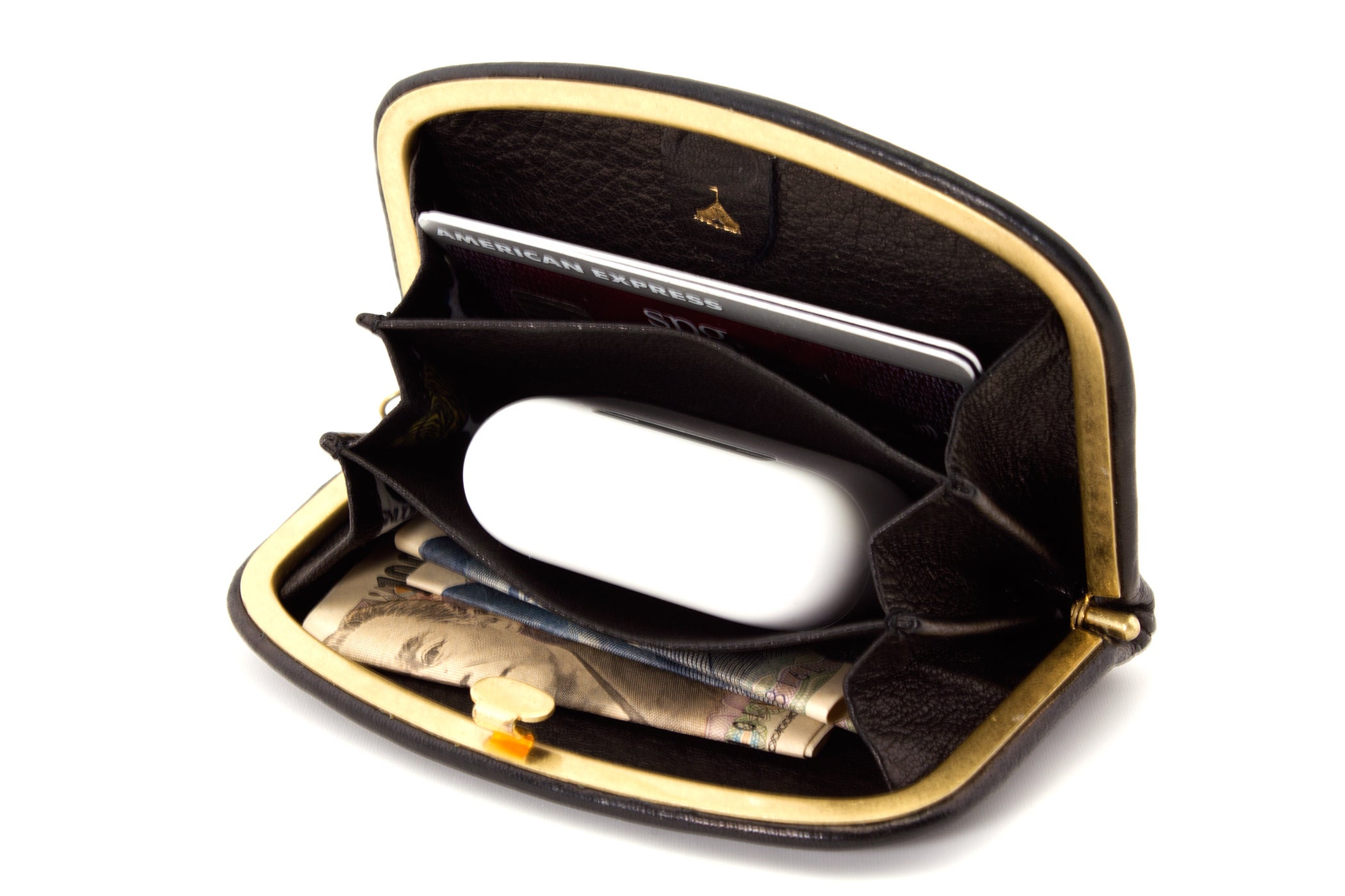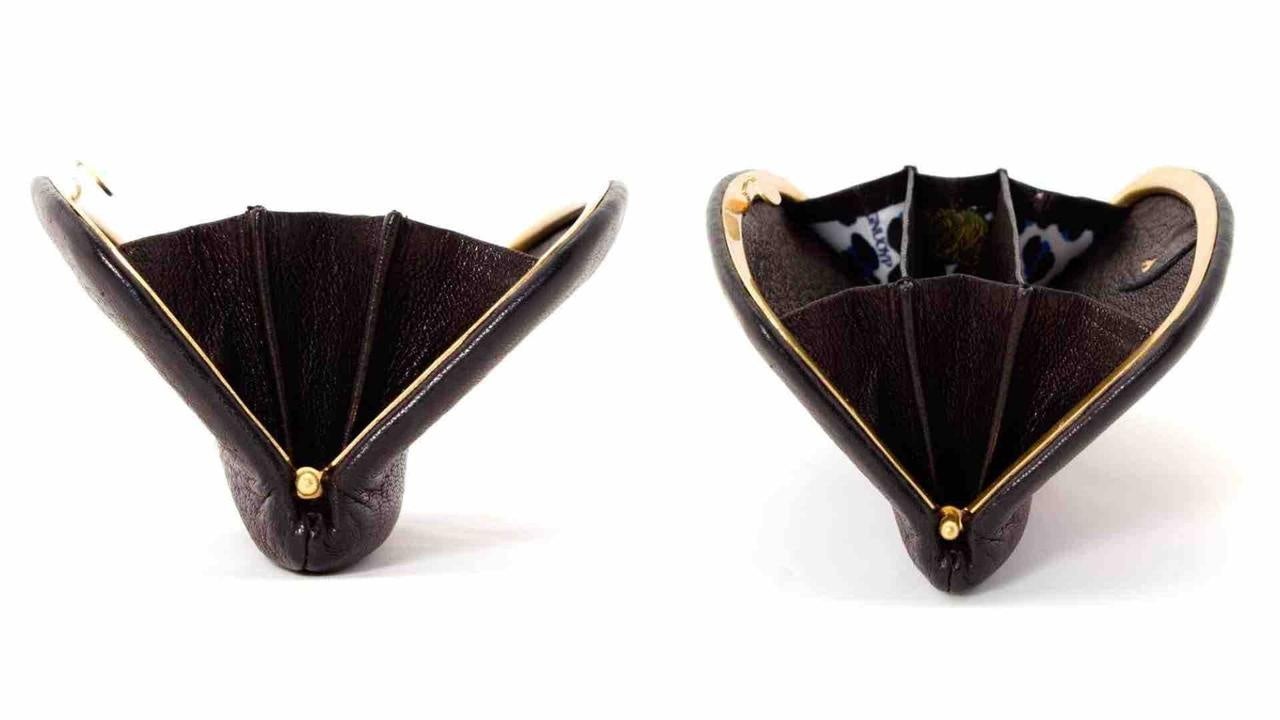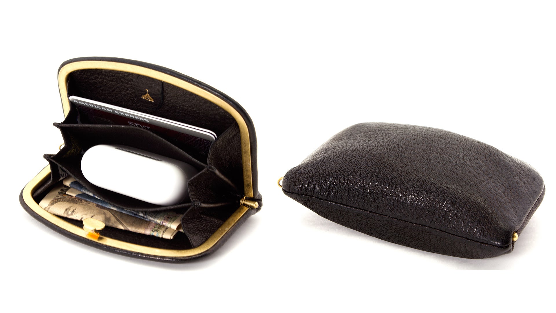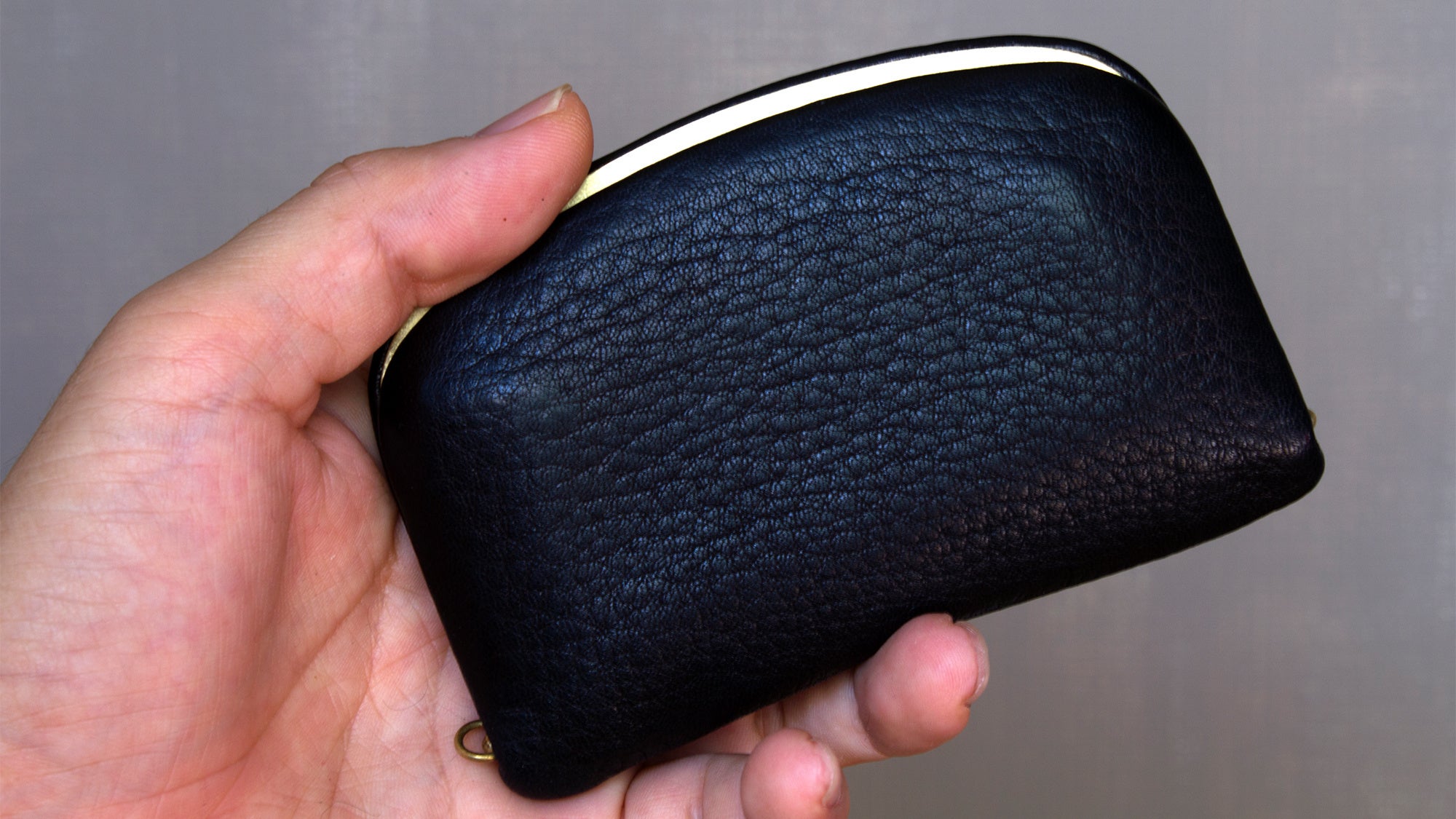 ワンタッチで開閉。大きく開く口は"がまぐち"の真骨頂。中身が見やすく出し入れ簡単。閉める時の感触と音は官能的でクセになると松重豊氏も絶賛。