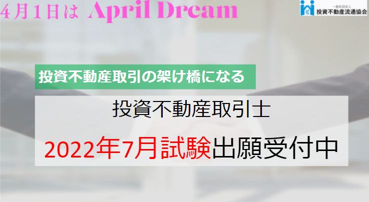 (一社)投資不動産流通協会は、2022年7月度の投資不動産取引士資格試験を実施します。
