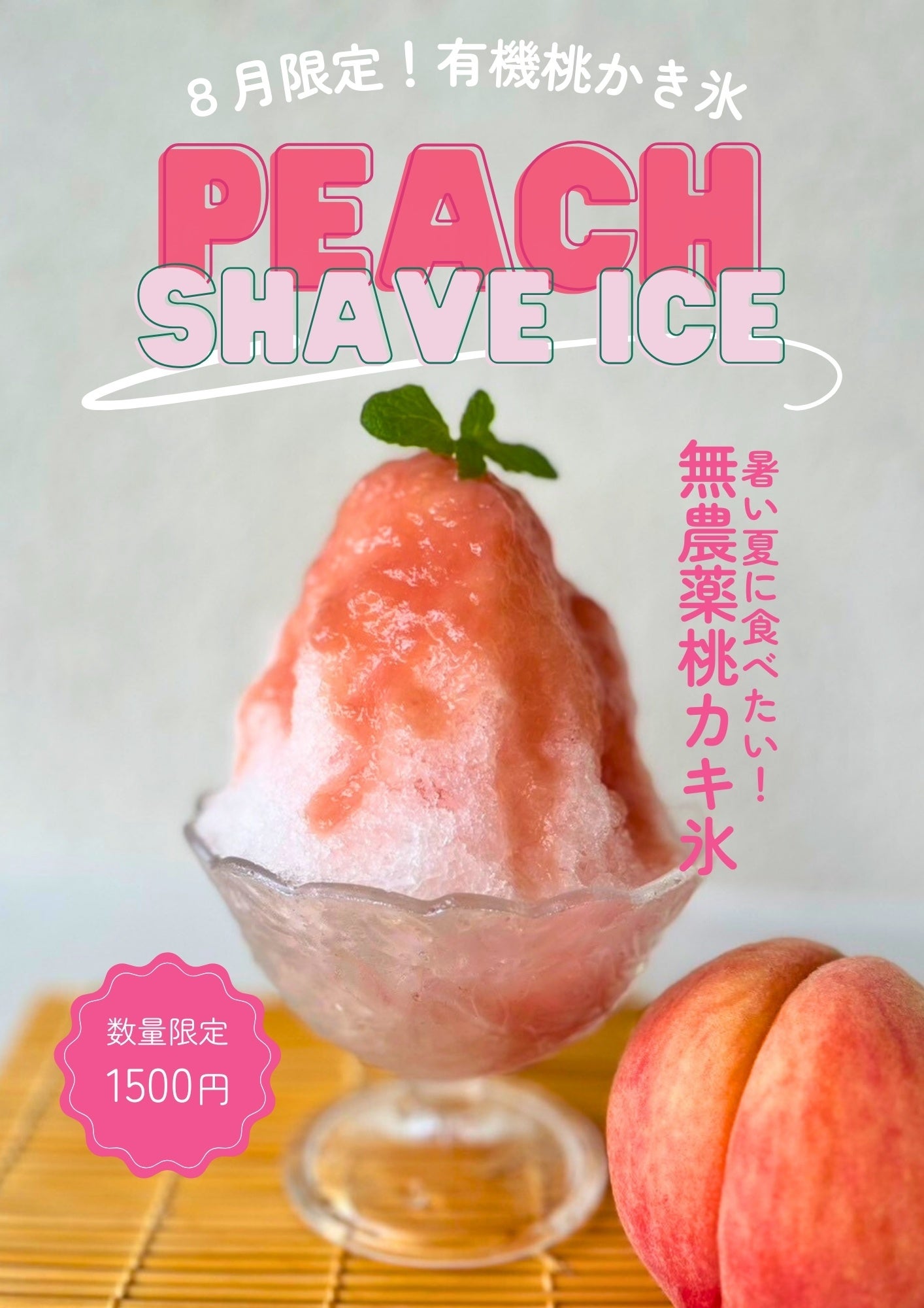 弊社では、そんな桃を使用した『有機桃かき氷』を8月1日(木)~8月31日(土)の期間限定にて販売いたします。