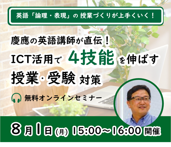 「慶應の英語講師が直伝!ICT活用で4技能を伸ばす授業・受験対策」オンラインセミナー開催(2022年8月1日)