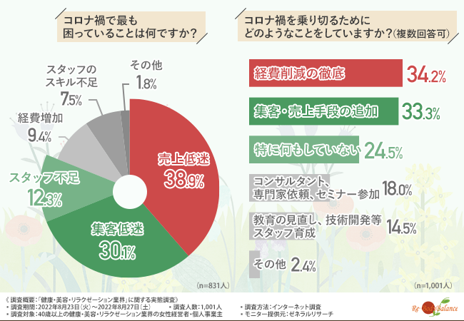 【コロナ禍での経営】健康・美容・リラクゼーション業界の4割以上が“売上”が減って困っている!対策として行っていることとは