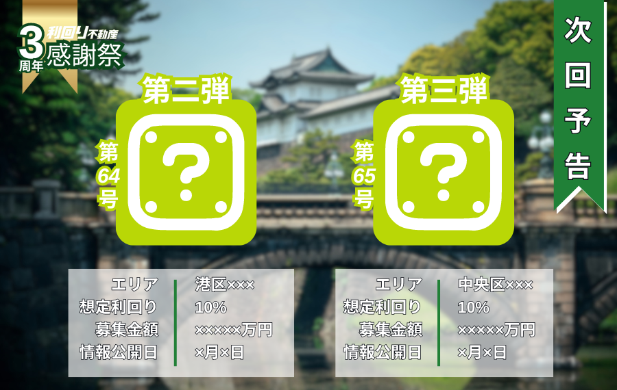 不動産クラウドファンディングの「利回り不動産」が感謝の気持ちを込めた「3周年感謝祭」を開催、3ファンド連続して高利回り案件が登場予定。