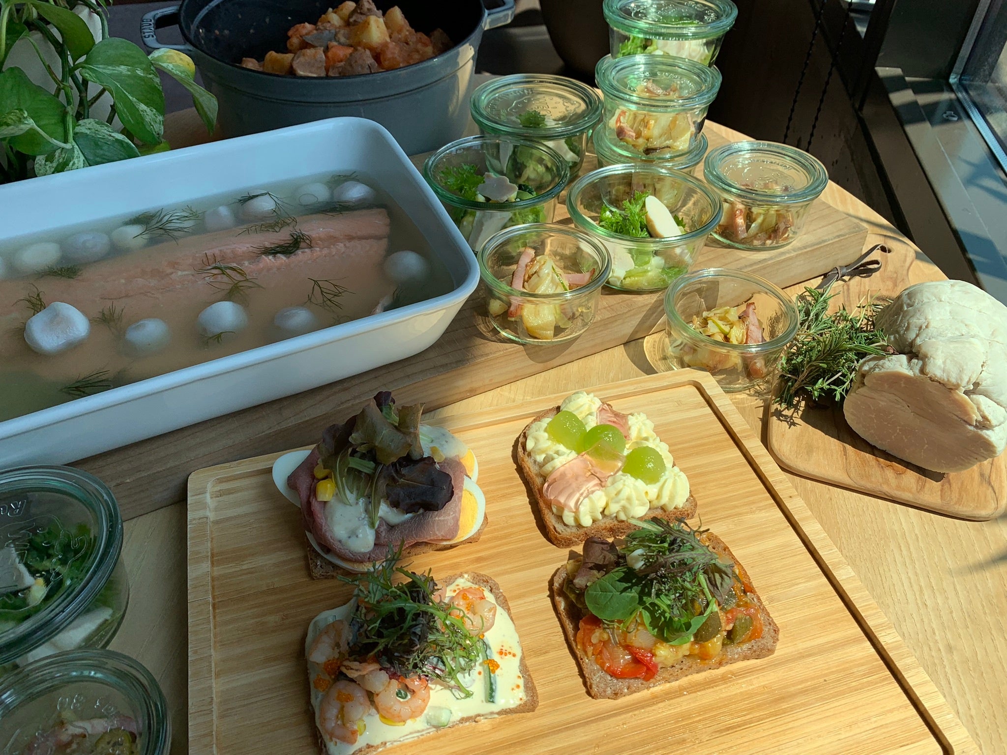 当ホテルの朝食は丁寧に調理したお料理をご自由にお召し上がりいただけるビュッフェスタイル。コロナ禍でもお客様に安心して朝食をお楽しみいただけるよう、お料理のひとつひとつがWECKのガラスの容器に個別盛りされています。それらの中には、北欧スタイルの空間の中で季節の食材を使ったお料理が種類豊富に用意され、さらにはレストランのシグニチャーメニューであるデンマークの伝統料理「スモーブロー」もお選びいただけ、クロワッサンなどの焼き立てパン、バリスタチャンピオンの岡田氏監修によるオリジナル北欧テイストブレンドのコーヒーなど、心も身体も満たされる朝食をご提供しています。