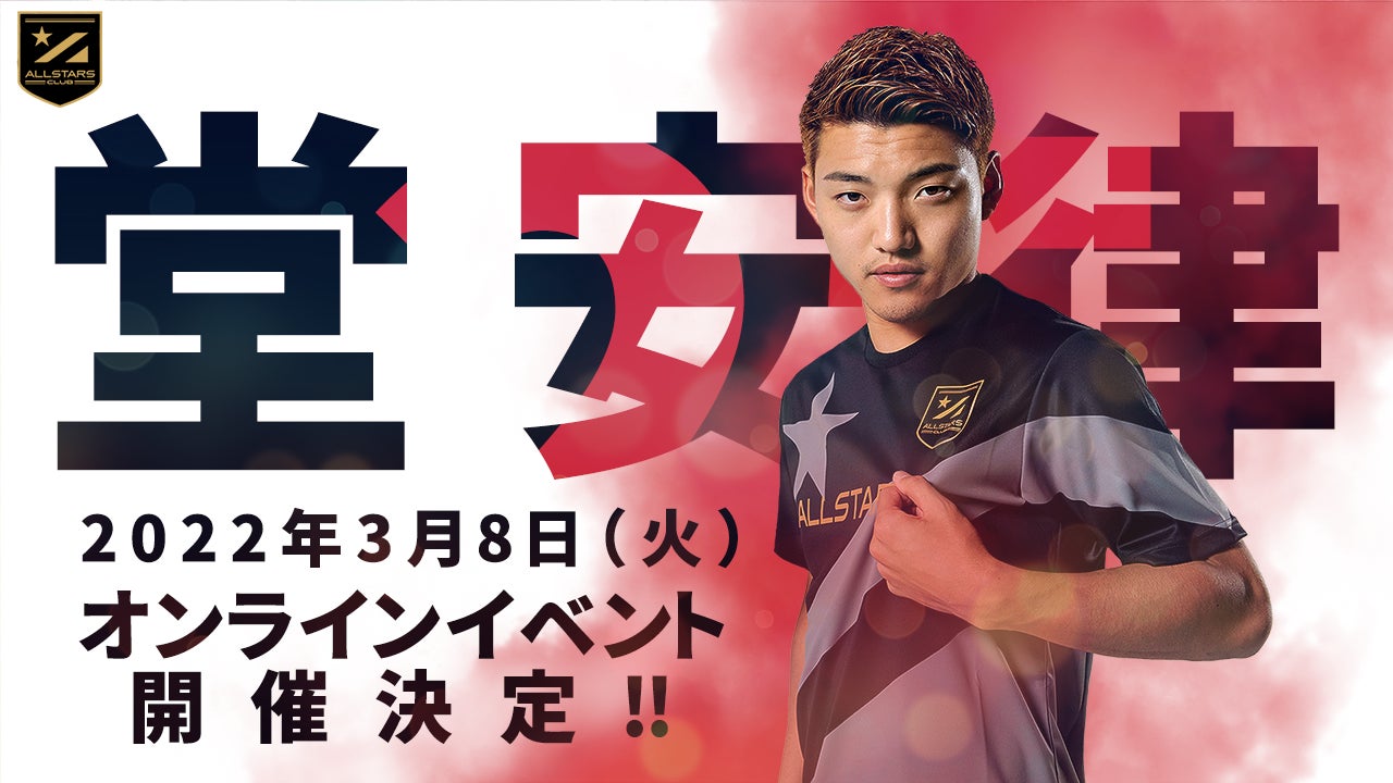 ALLSTARS CLUB(運営:ANOTHER DISCOVERY 株式会社)は、堂安律選手と直接交流できるイベントを2022年3月8日に開催することを発表いたします。