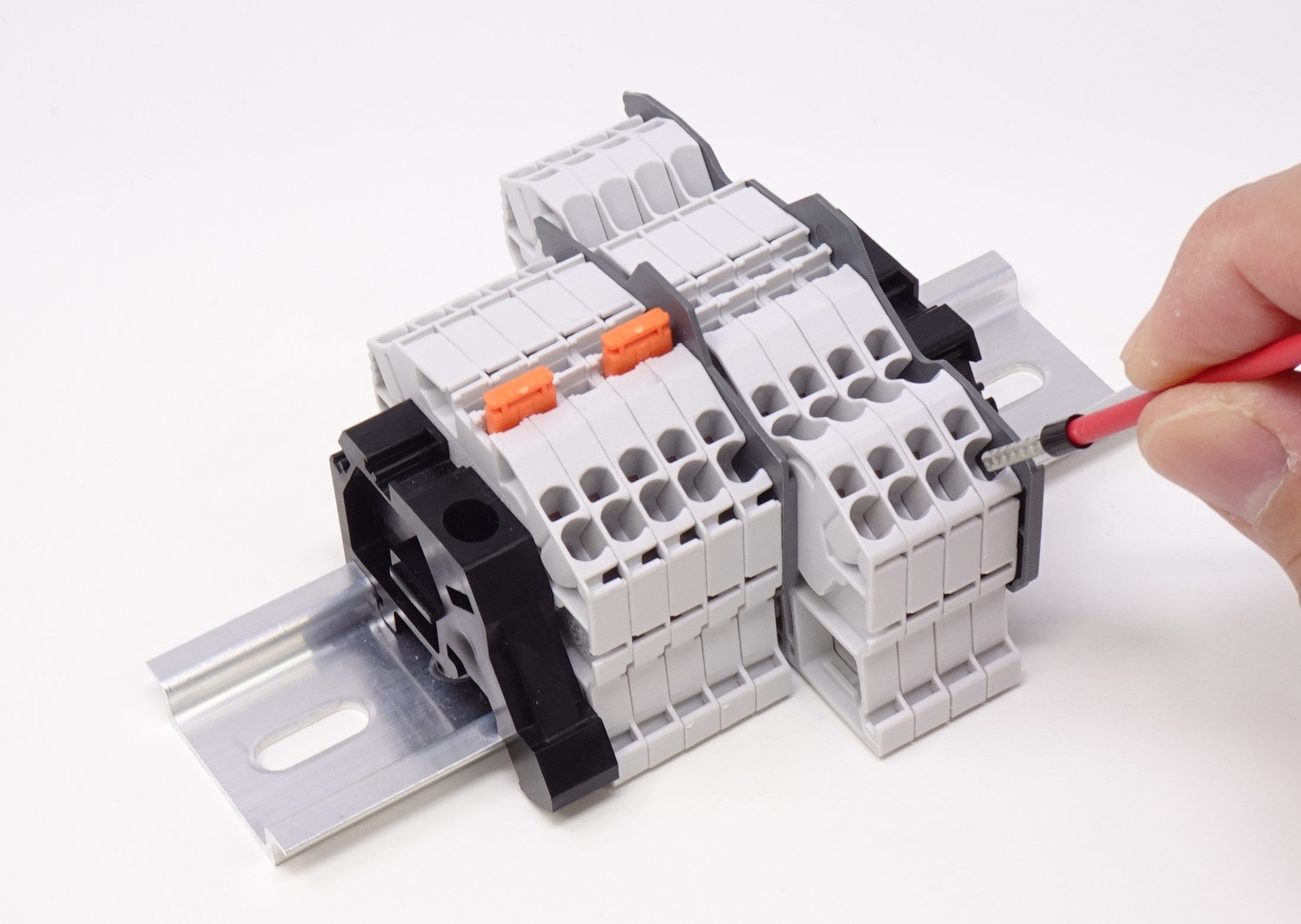 ENTRELEC DINレール式 プッシュイン&スプリング組端子台のアッセンブリ・販売を開始