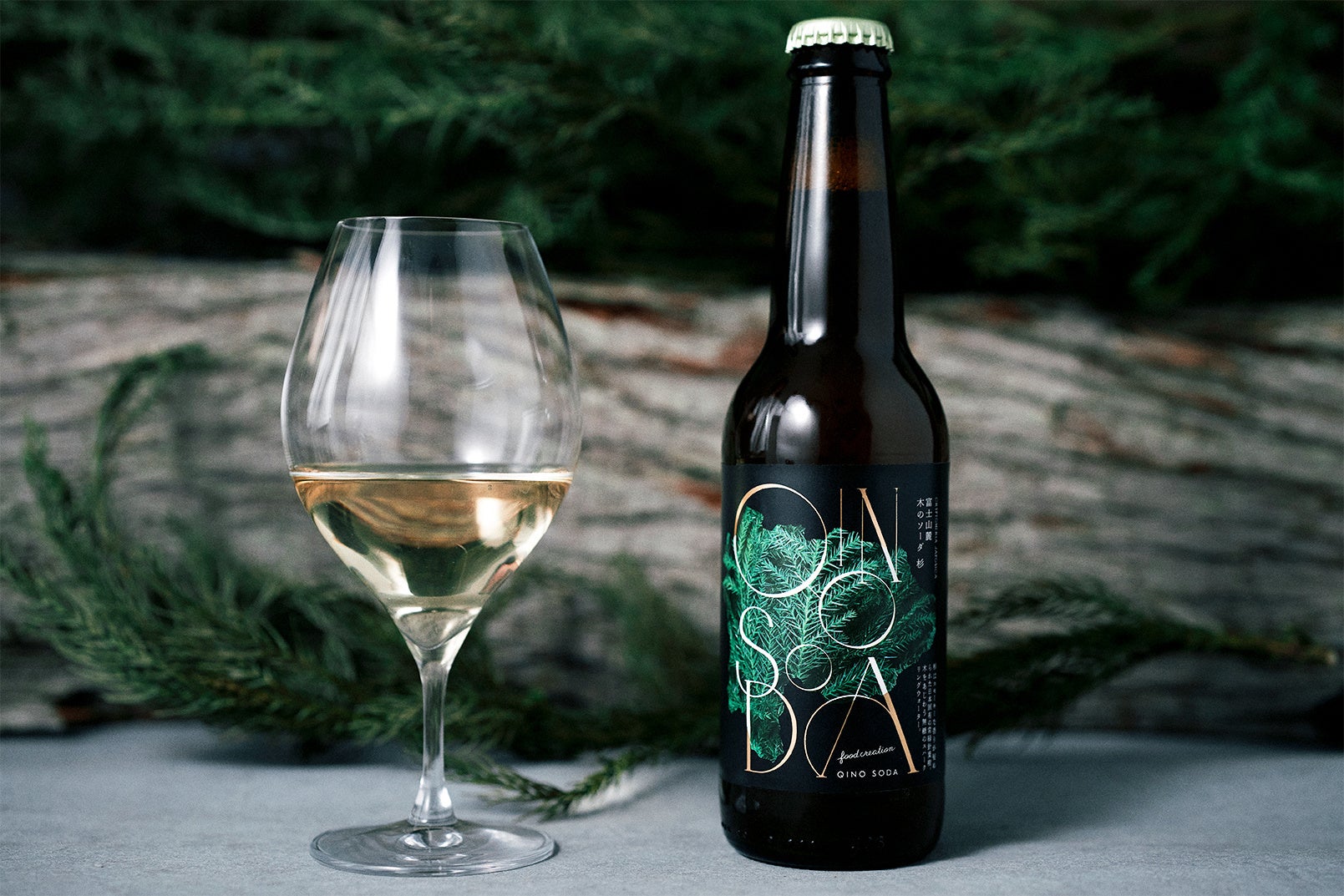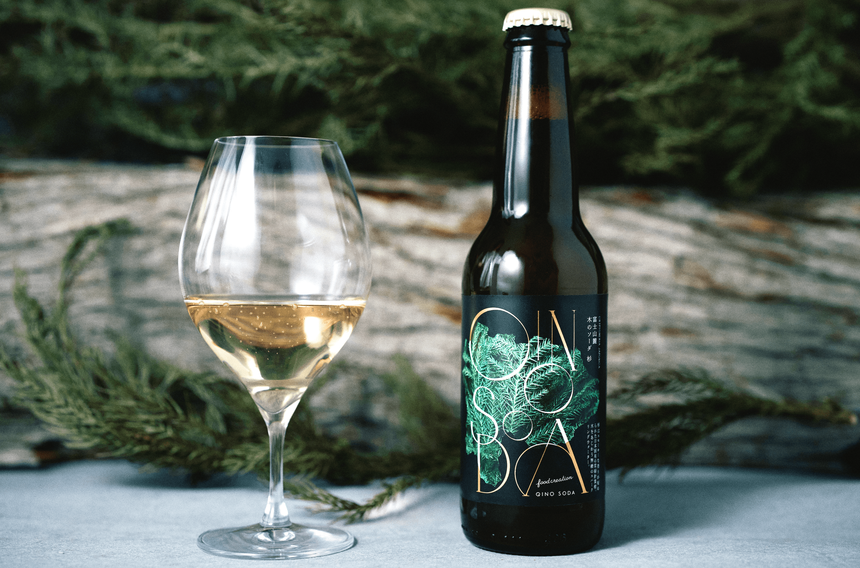 山梨の未利用杉をアップサイクルした、木を飲むソーダ「QINO SODA -杉- 富士山麓」を10/8 “木の日”に発売