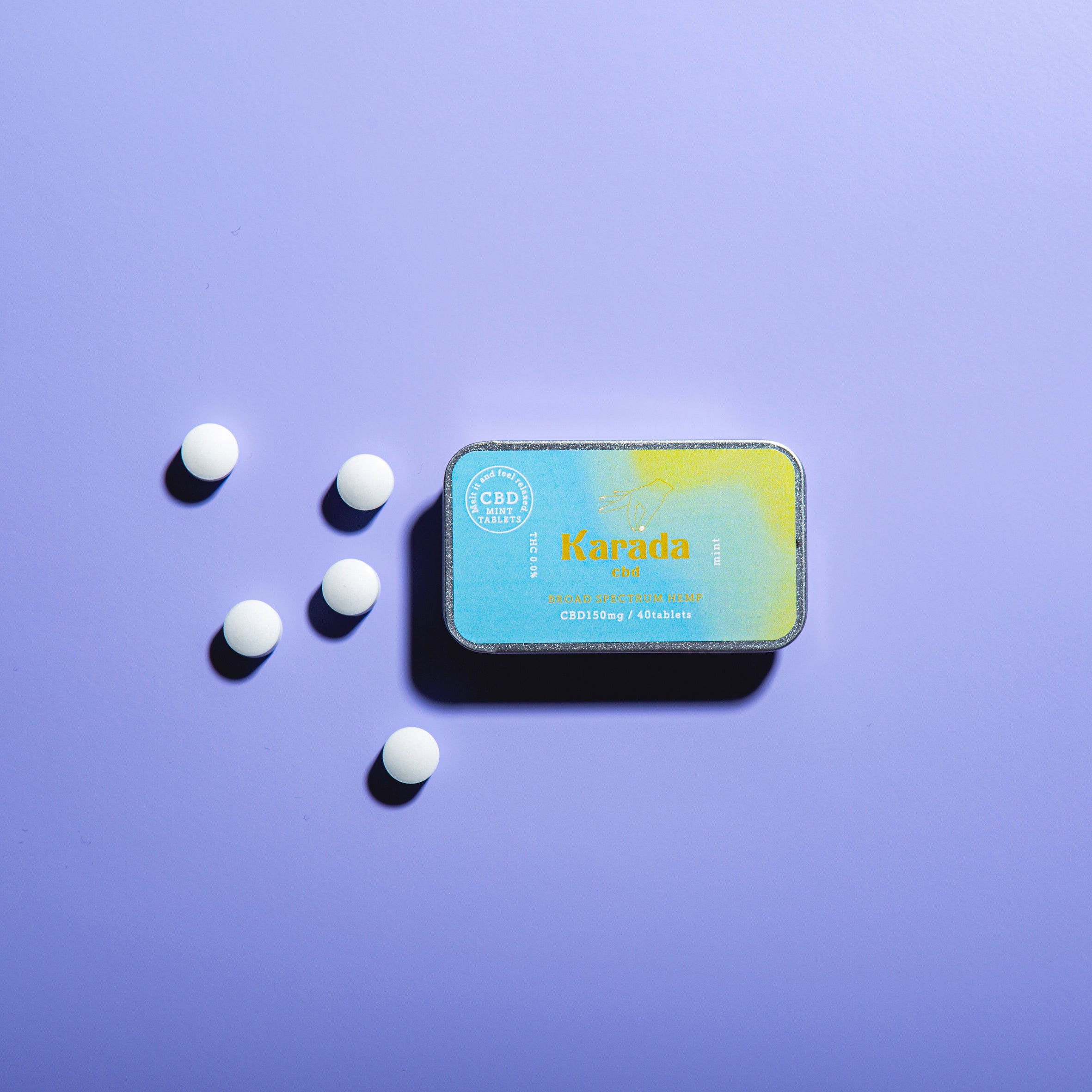 karadaCBDから人工甘味料や香料を一切使わず、天然成分だけを使用したCBD入りミントタブレットが発売。高品質なブロードスペクトラムCBDが150mg含有されています。