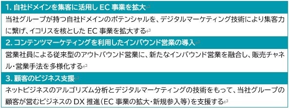 当社グループが長年培ってきた顧客基盤や自社ドメインという資産に、イコリスの力を加えることで、ビジネスモデルの変革を図ります