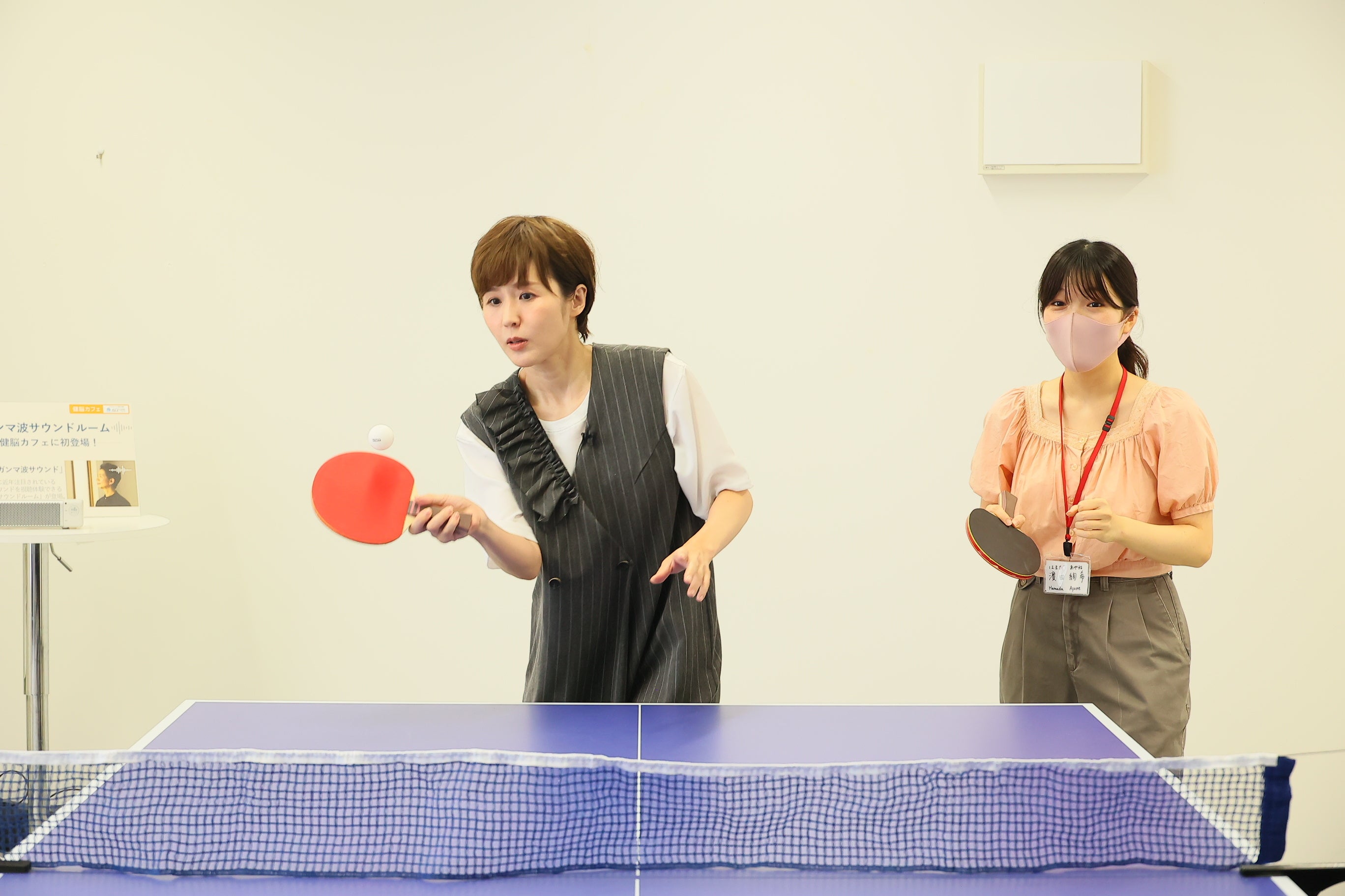 また、最後は卓球を健脳カフェのサポートを行う学生(上智大学老年心理学のゼミ生の方々)と一緒に楽しんだ。にしおかさんは最後に「頭を使って楽しみながら皆さんと卓球をすることが出来てよかった。」と語りました。
