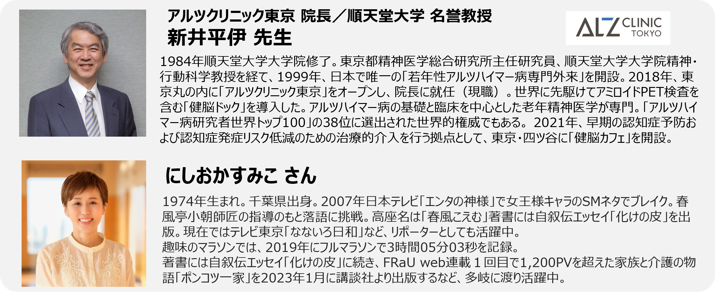 ■新井平伊×にしおかすみこさんトークセッション「認知症予防の今とこれから」