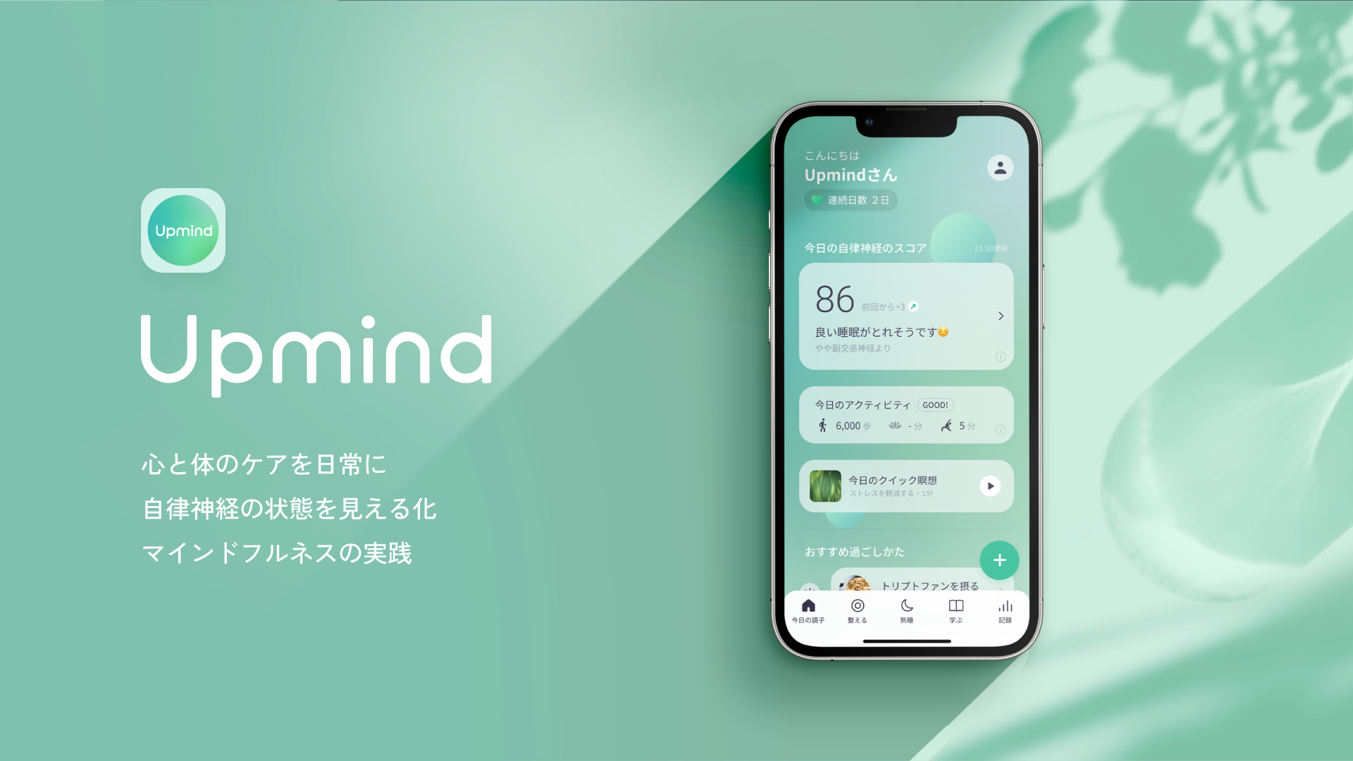 自律神経の状態を見える化し、心と体を優しくケアするアプリ「Upmind」が本リリース