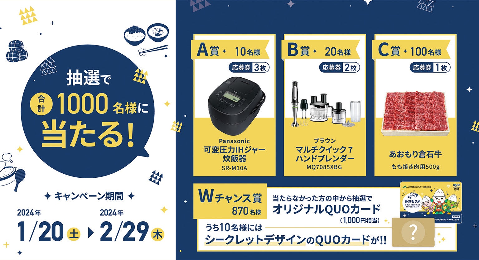 青森県産米を対象とした『あおもり米食べて今だけ。キャンペーン』を実施!