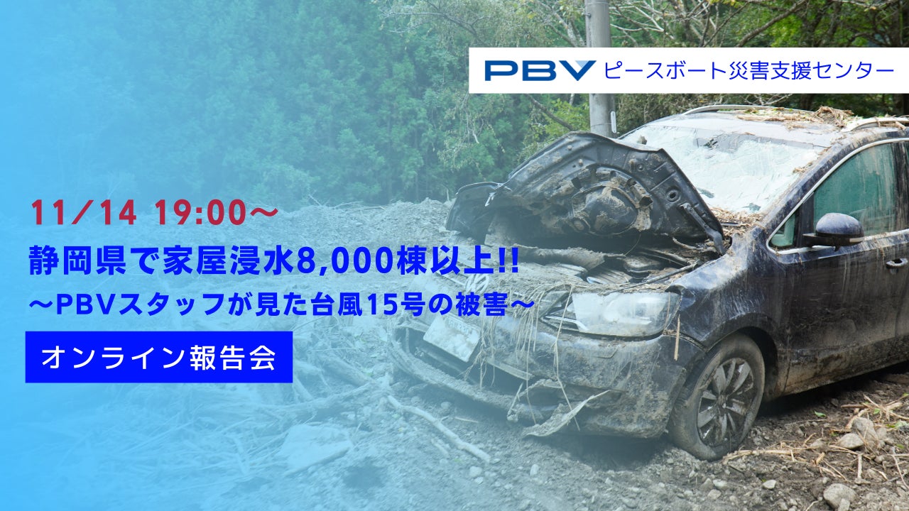 PBVスタッフは9月末より静岡県に滞在し、様々な支援を行なってきました。日々、現地で活動するスタッフとオンラインでつなぎ、「静岡県で家屋浸水8,000棟以上!!〜PBVスタッフが見た台風15号の被害〜」と題して報告会を開催します。