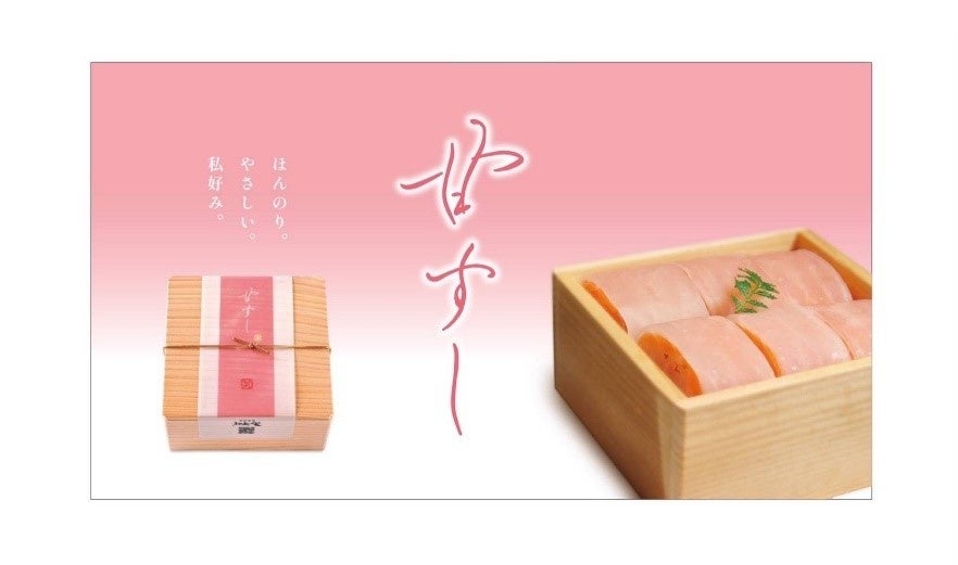 お土産の「甘すし」は開発に1年の歳月をかけ誕生した。女性らしさをイメージしたキングサーモンのピンクが美しい押し寿司である。麹漬けサーモンのとろけるような食感、脂の旨味、両者が絶妙なバランスで融合し、富山のます寿司とは一線を画した押し寿司となっている。一口ほおばると、思わず微笑んでしまうような優しい甘すし。ご自宅用はもちろん、手土産としても喜ばれる一品。神楽饗で過ごしたひと時を、ご家庭でも楽しんでいただける。