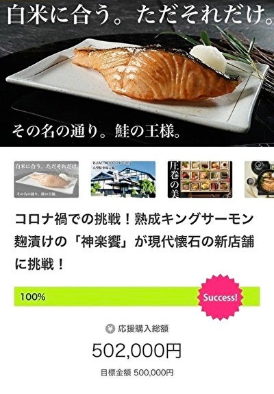 クラウドファンディング公開初日に100%達成!年間6万食以上をお届けする熟成キングサーモン麹漬けの「神楽饗」が現代懐石料理の新店舗で再出発!4月29日オープン!