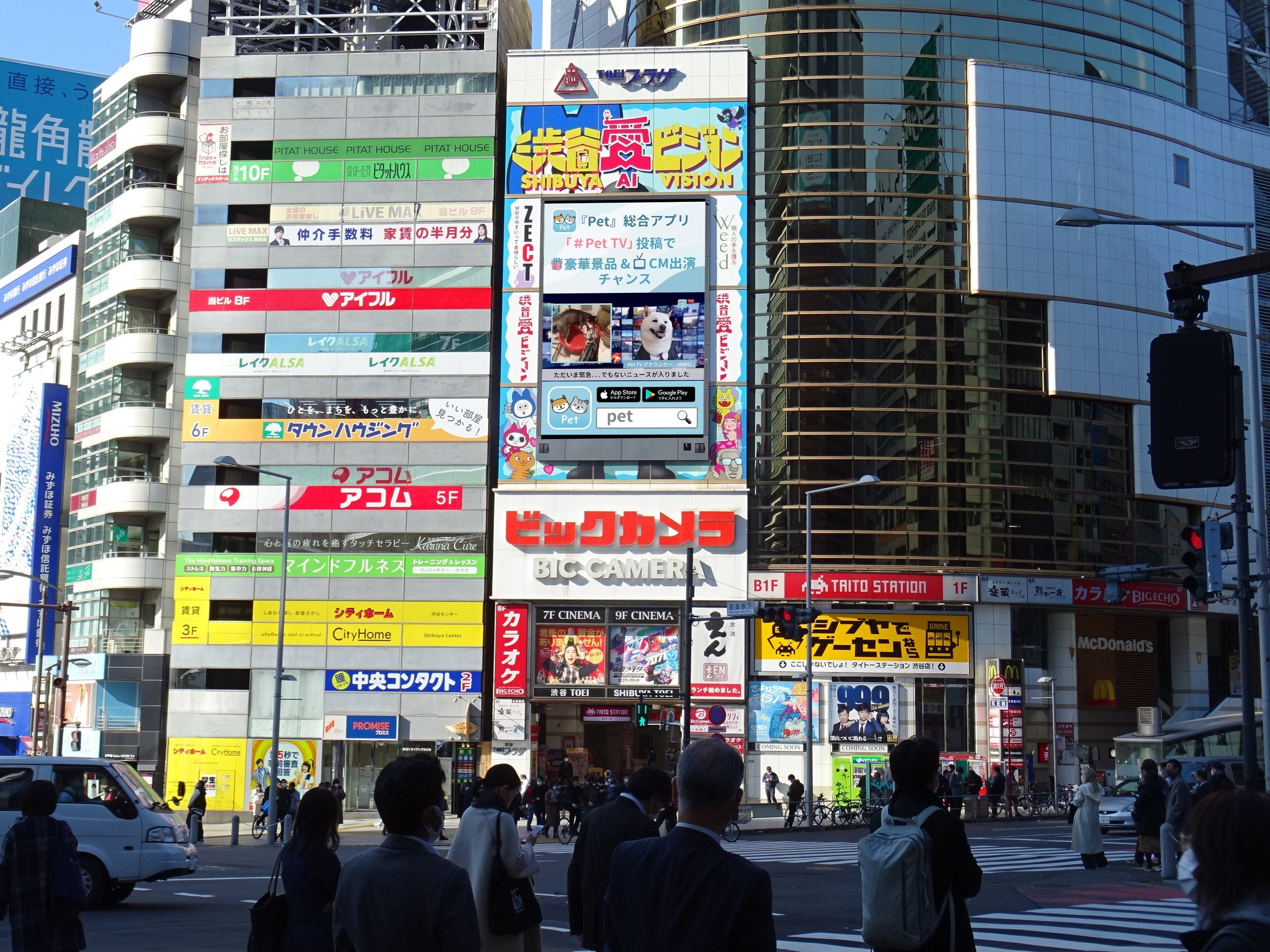「PetTV」は渋谷の宮益坂下交差点に位置する大型ビジョンでも放映中です。