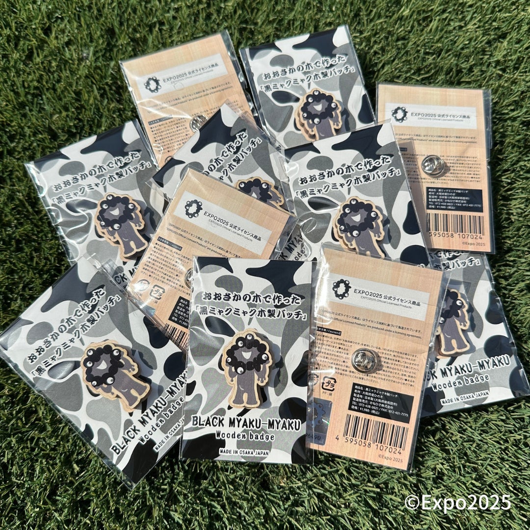 黒ミャクミャク木製バッチ新発売。