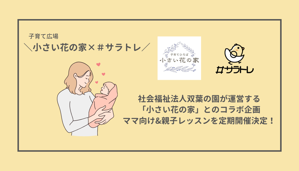女性専用&子連れOKのパーソナルジム 『#サラトレ』を運営するSURL株式会社(本社:東京都目黒区、代表取締役社長:湯浅 陸)と社会福祉法人双葉の園(所在地:東京都目黒区、理事長: 西 大記)と業務提携し、同法人が運営する「子育てひろば 小さい花の家」に通うママ向け、親子向けのレッスンを定期開催することを発表いたします。