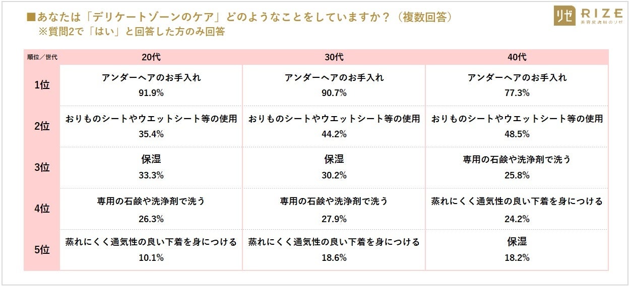 デリケートゾーンケアをしている割合-老若男女に広がる脱毛市場】医療法人社団風林会 リゼクリニックより