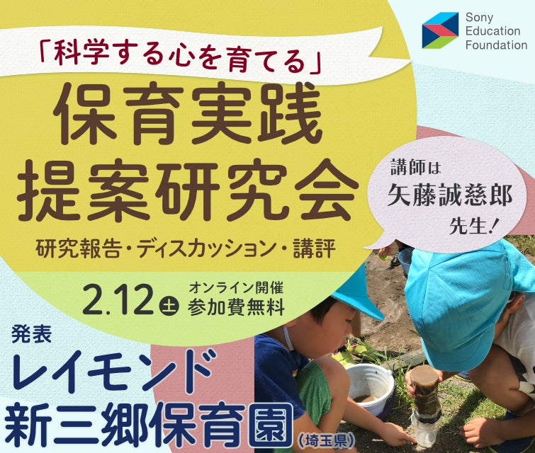 2020年度のソニー幼児教育支援プログラム「科学する心を育てる」優秀園として入賞した、レイモンド新三郷保育園(埼玉県三郷市/社会福祉法人 檸檬会)が、2022年2月12日(土)に和洋女子大学教授の矢藤誠慈郎先生をお招きし、保育園における『実践提案研究会』を開催いたします。