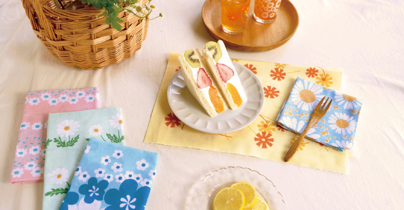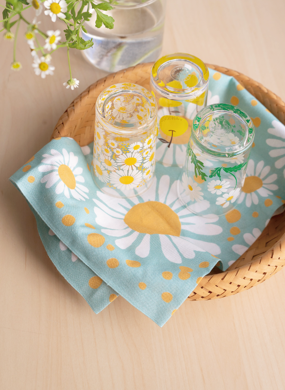てぬぐいは職人が1色ずつ手作業で染める「手捺染」でグラスと同様の懐かしさと温かみがある風合いを再現。バンダナやバッグの目隠しを始め、ランチョンマットなど鮮やかな色合いを様々にお楽しみいただけます。