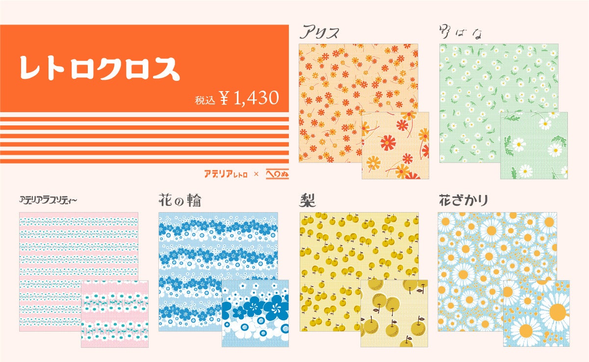 レトロクロスはレトロ印刷をイメージした風合いとやわらかな肌触りが特徴で、ハンカチやお弁当包みにはもちろんブックカバーにするのもオススメ。