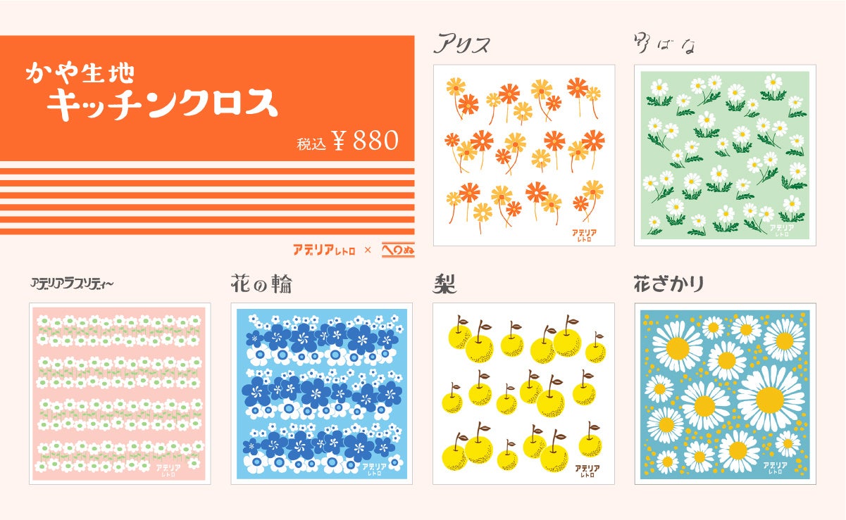 レトロクロスには触り心地や吸水性・丈夫さなどが、てぬぐいの使用感に近い生地を選びました。