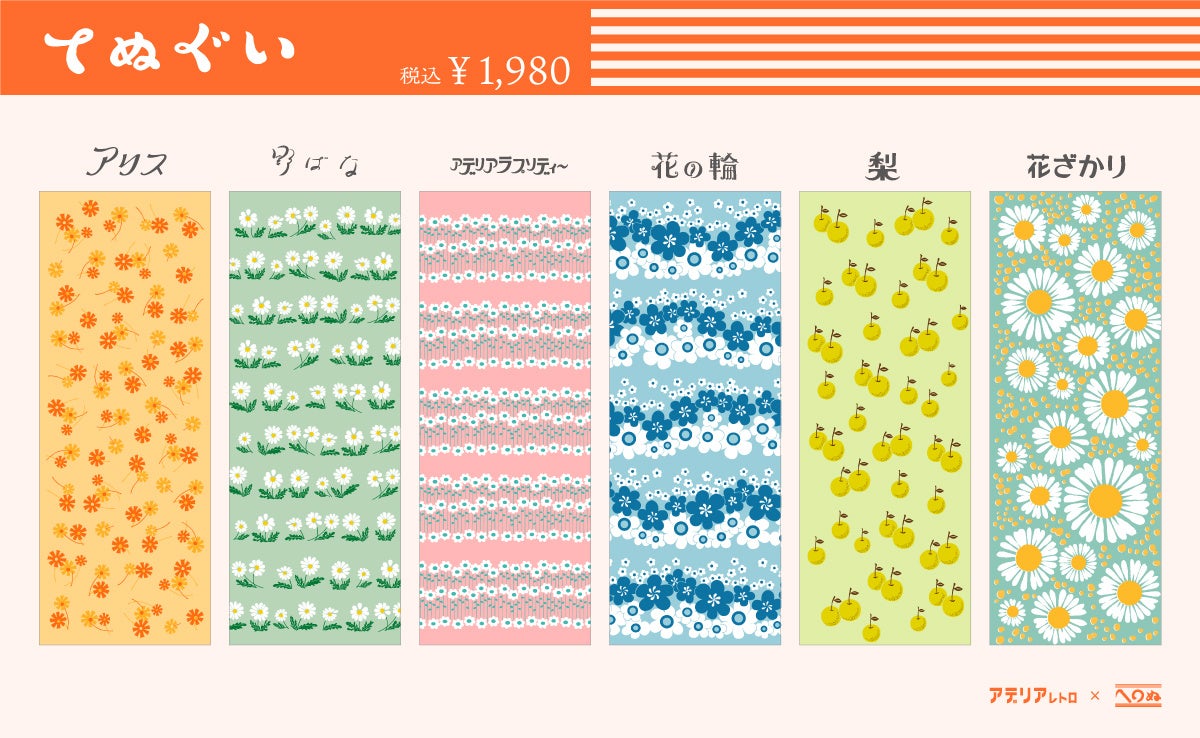 「アデリアレトロ × かまわぬ」は2023年6月19日(月)より、かまわぬ公式オンラインストア、かまわぬ楽天市場店、かまわぬ直営各店(まめぐい グランスタ東京駅店を除く)、一部の全国取扱店で販売を開始いたします。詳細はかまわぬ公式サイト(https://kamawanu.jp/)にてご確認ください。