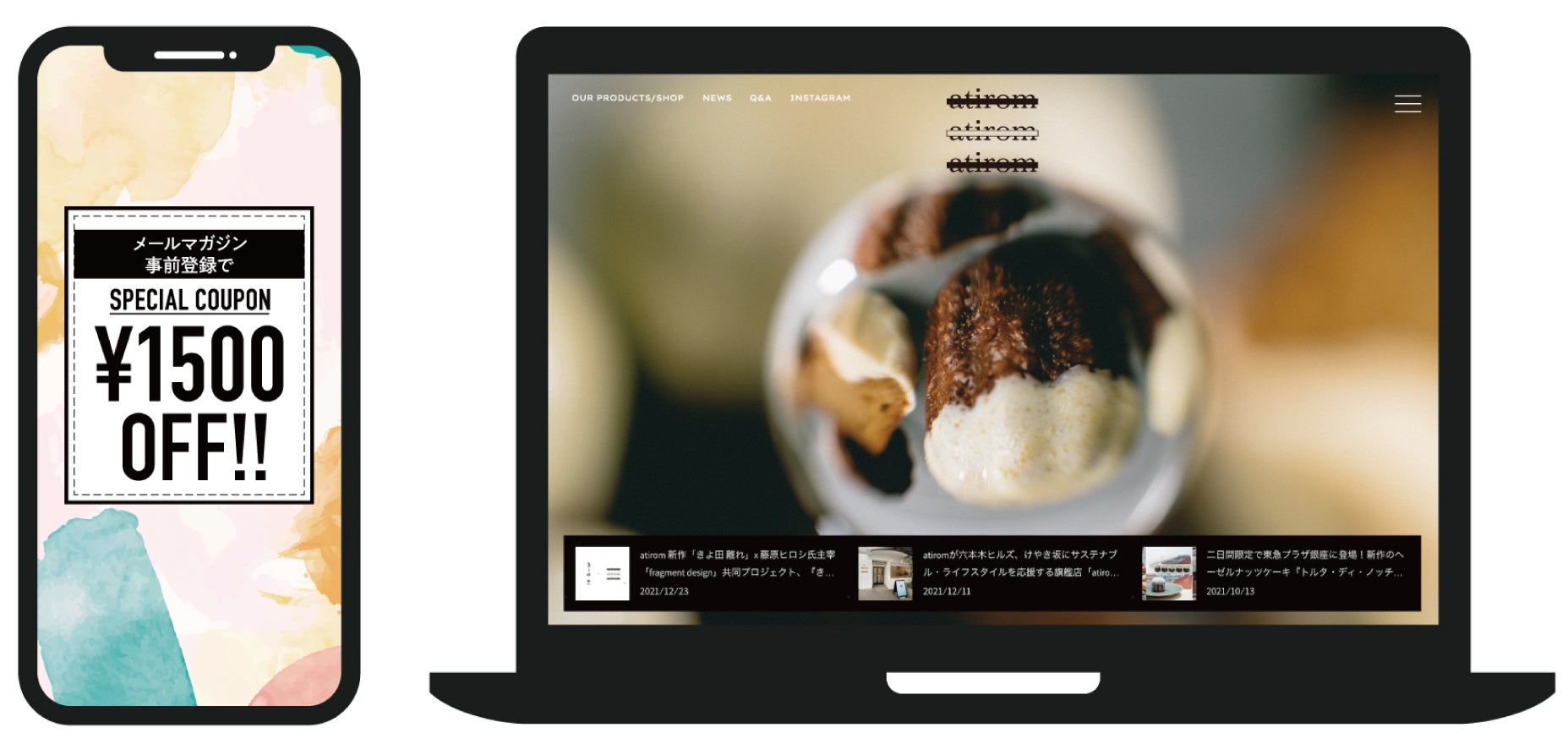 『atirom ONLINE』では、おいしい、たのしい、あたらしい、をご自宅にお届け致します。今までアティロムがプロデュースした「富士山カヌレ」などの入手困難なプロダクトが一度にご購入頂けます。またメールマガジン登録者全員に、2月末日までご利用できる1,500円引きクーポンを期間限定にてプレゼント中です。いつもすぐに売り切れてしまう入手困難な商品の事前予約情報やオンラインストア限定商品などの情報を優先的に受け取ることが可能です。