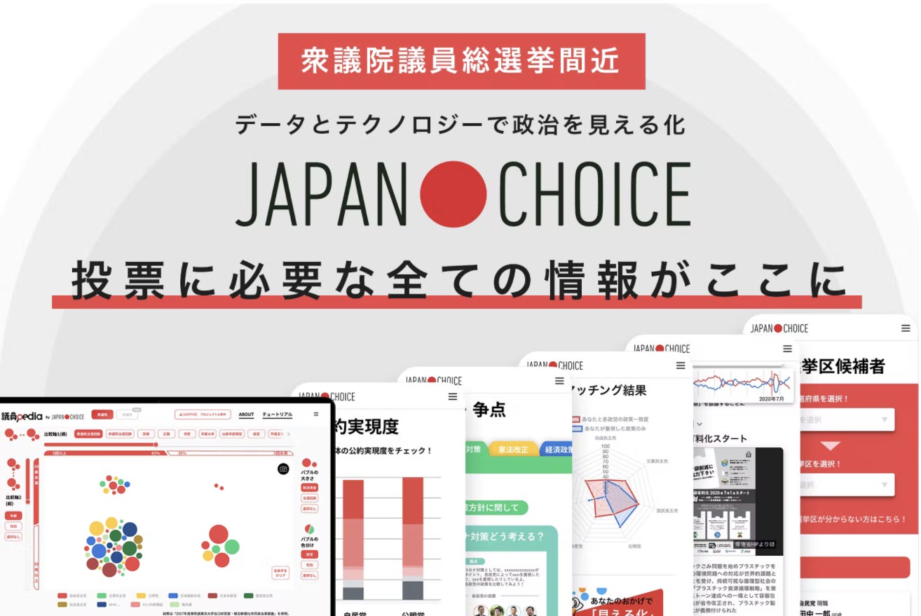 特定のイデオロギーに固執しない政治的公平な立場から、 データ、デザインを駆使して網羅的な政治情報を発信。全ての有権者に対して、 投票に行く際の手助けとなる情報を提供することを目的とした情報プラットフォーム。