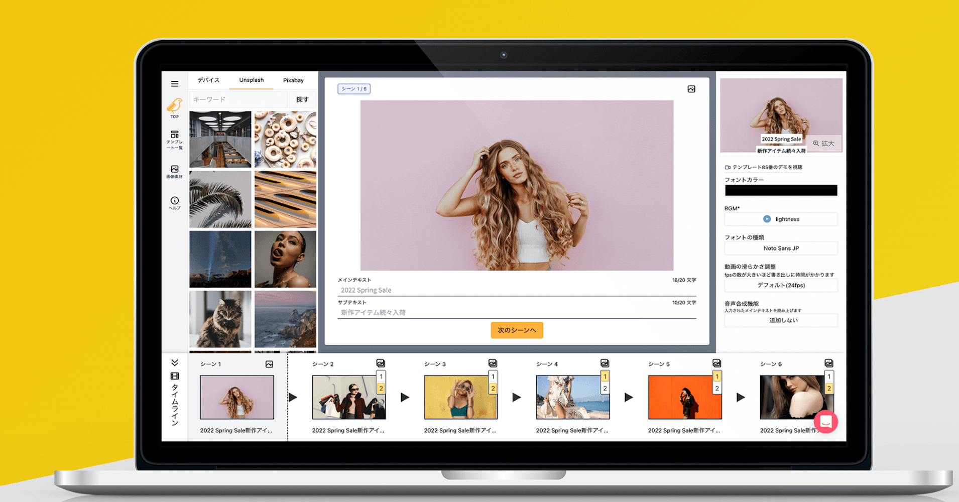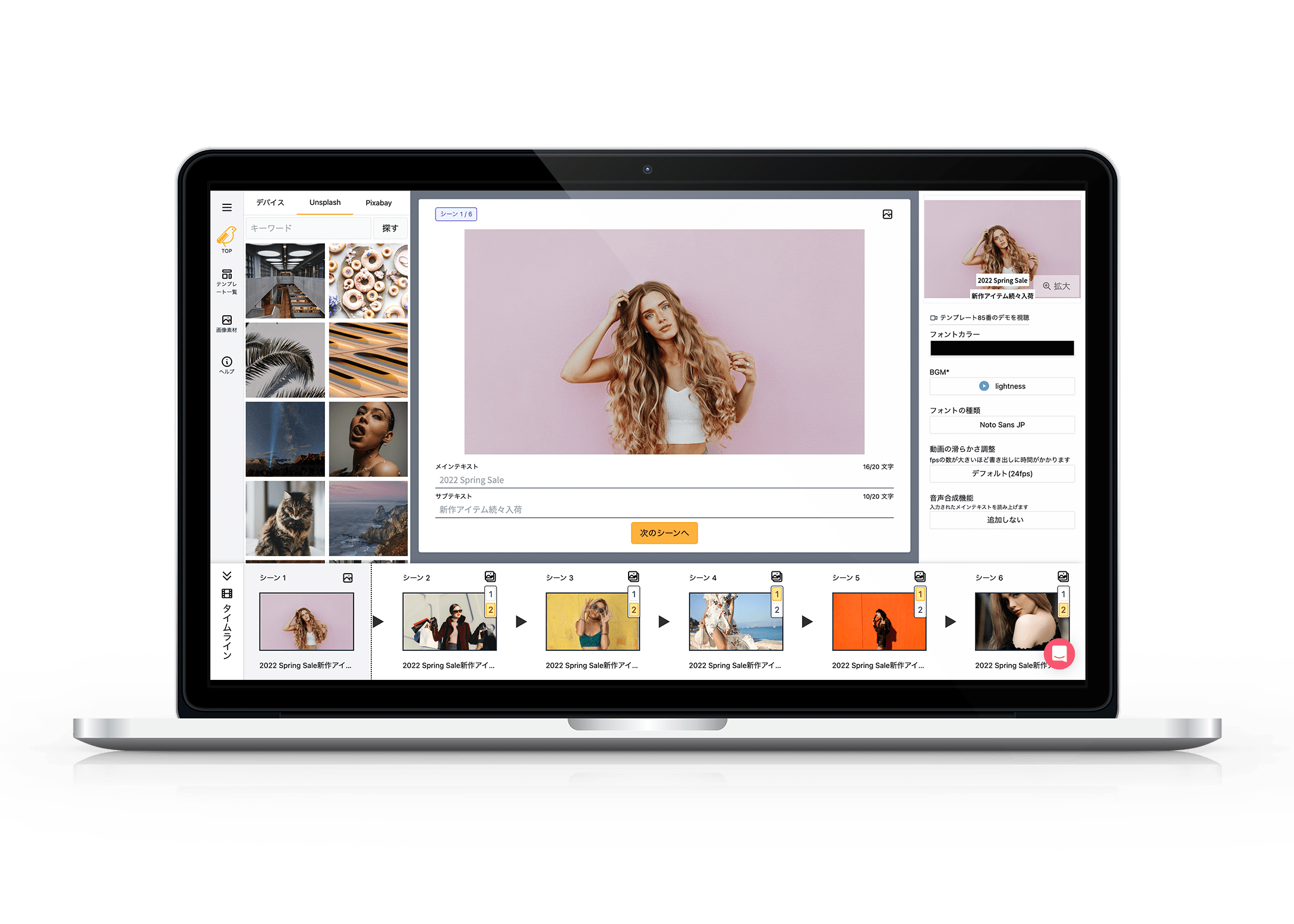 →画像とテキストを入れていただくだけで動画コンテンツを生成します。