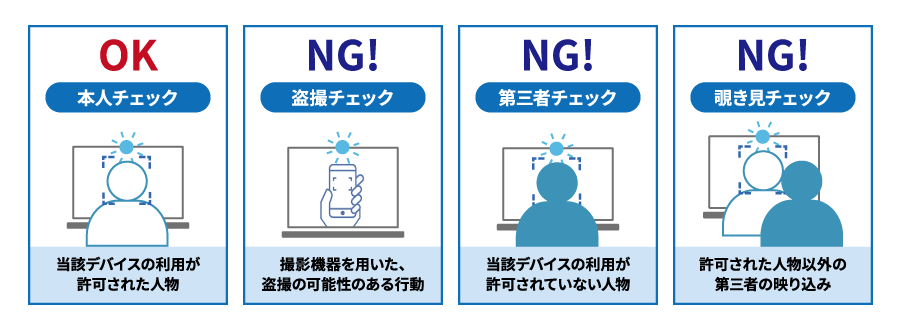 (1)AIエンジンを搭載した認証機能により、盗撮・覗き見を検知